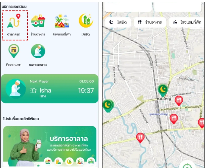 Aplikasi ini terhubung ke Google Maps untuk navigasi yang akurat. Aplikasi ini juga mendukung 3 bahasa, Thailand, Inggris, dan Arab, sehingga wisatawan Muslim dapat hidup dan bepergian dengan lebih nyaman dan tenang,” kata Bapak Erfun Weahama, Petugas Layanan Sains, tim pengembangan Aplikasi Halal Route.