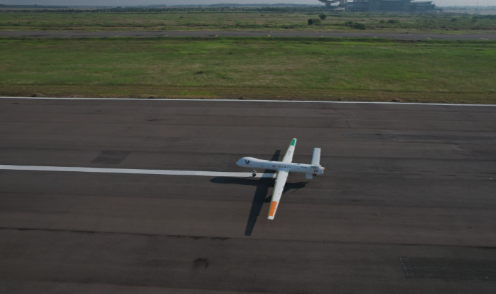 Jakarta, Suarathailand- PT Dirgantara Indonesia (PTDI) melakukan uji terbang pesawat tanpa awak jenis Medium Altitude Long Endurance (PTTA MALE) yang bernama Elang Hitam di Bandara Internasional Jawa Barat (BIJB) Kertajati, Majalengka, Jawa Barat, Senin (28/7).