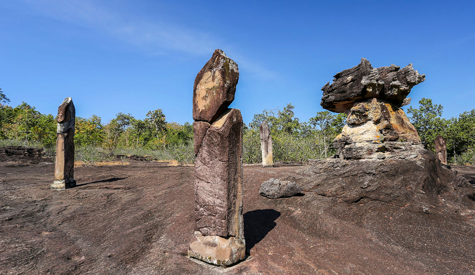 Selain itu, tempat perlindungan batu alam telah dimodifikasi menjadi situs keagamaan oleh orang-orang dari berbagai budaya, termasuk Dvaravati, Khmer, Lan Xang, dan Rattanakosin. Jejak arkeologi ini menggambarkan perkembangan sosial manusia di Timur Laut Thailand.