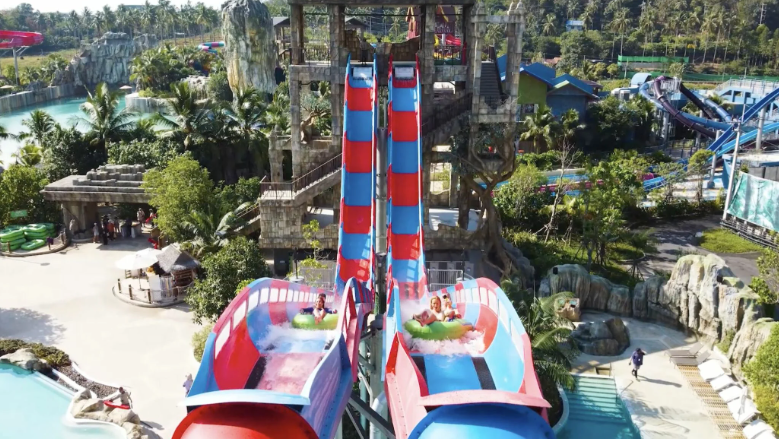 > Di taman air ini menawarkan 25 atraksi permainan kolosal.