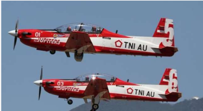 Pesawat Korean Trainer (KT) 1-B dengan kode Woongbee dari Tim Aerobatik Jupiter tersebut siap memeriahkan perayaan HUT ke-79 RI di IKN.