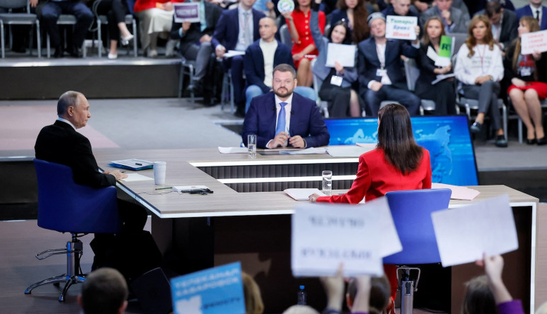 Sesi tanya jawab tahunan tradisional, yang sering berlangsung selama berjam-jam, sebagian besar merupakan acara televisi sekaligus menjadi tempat langka di mana ia dicecar dan menjawab beberapa pertanyaan tidak mengenakkan dari audiens studio yang dipilih dengan saksama.