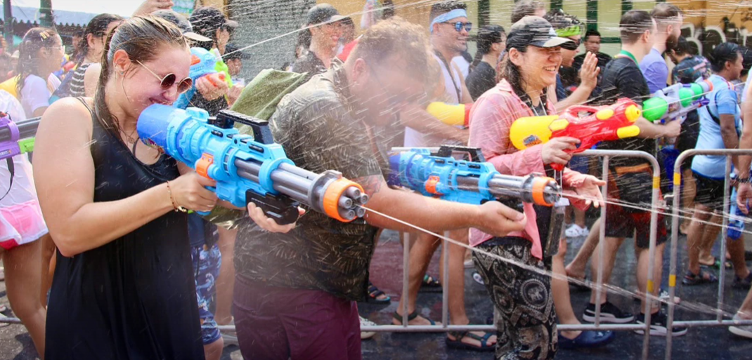 Festival Songkran di Thailand memang menyedot banyak penasaran para wisatawan asing. Pesonanya membuat para turis tersihir menikmati semua kegiatan terkait Songkran. Salah satunya perang siram air. Sejumlah kota di Thailand menggelar acara siram air. Termasuk di Bangkok.