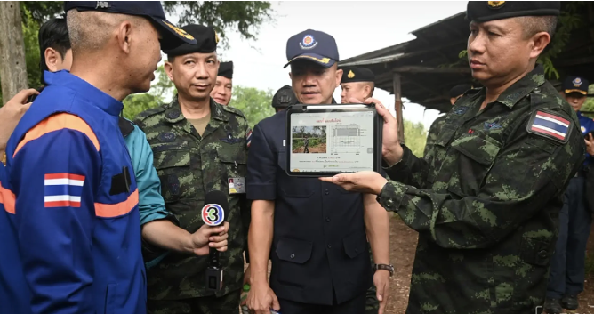 Jenderal Manas Chandee, Kepala Staf RTARF, bersama timnya, mengunjungi area tersebut untuk mensurvei garis perbatasan dari titik 48 hingga 51, yang meliputi wilayah dari Ban Pa Rai hingga Ban Tha Kham di Aranyaprathet, Provinsi Sa Kaeo, pada hari Kamis.