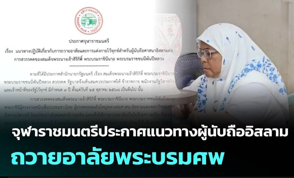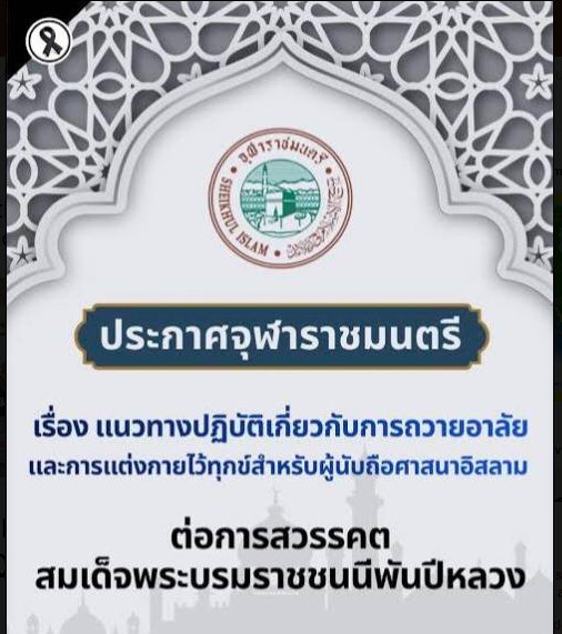 Oleh karena itu, umat Islam dapat berpartisipasi dengan semestinya dalam berkabung atas wafatnya Yang Mulia Ibu Suri, misalnya dengan mengurangi perayaan, berpakaian sopan dengan warna-warna polos, menyampaikan belasungkawa, dan berdoa agar masyarakat Thailand tetap damai di bawah naungan Raja. Semua ini dianggap sebagai ungkapan rasa hormat dan kewarganegaraan yang baik berdasarkan prinsip-prinsip Islam.