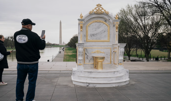 Gedung Putih, Suarathailand- Berikut adalah salah satu monumen yang mungkin tidak terlalu disukai Presiden Donald Trump karena dihiasi dengan namanya: sebuah toilet emas di dekat Gedung Putih.